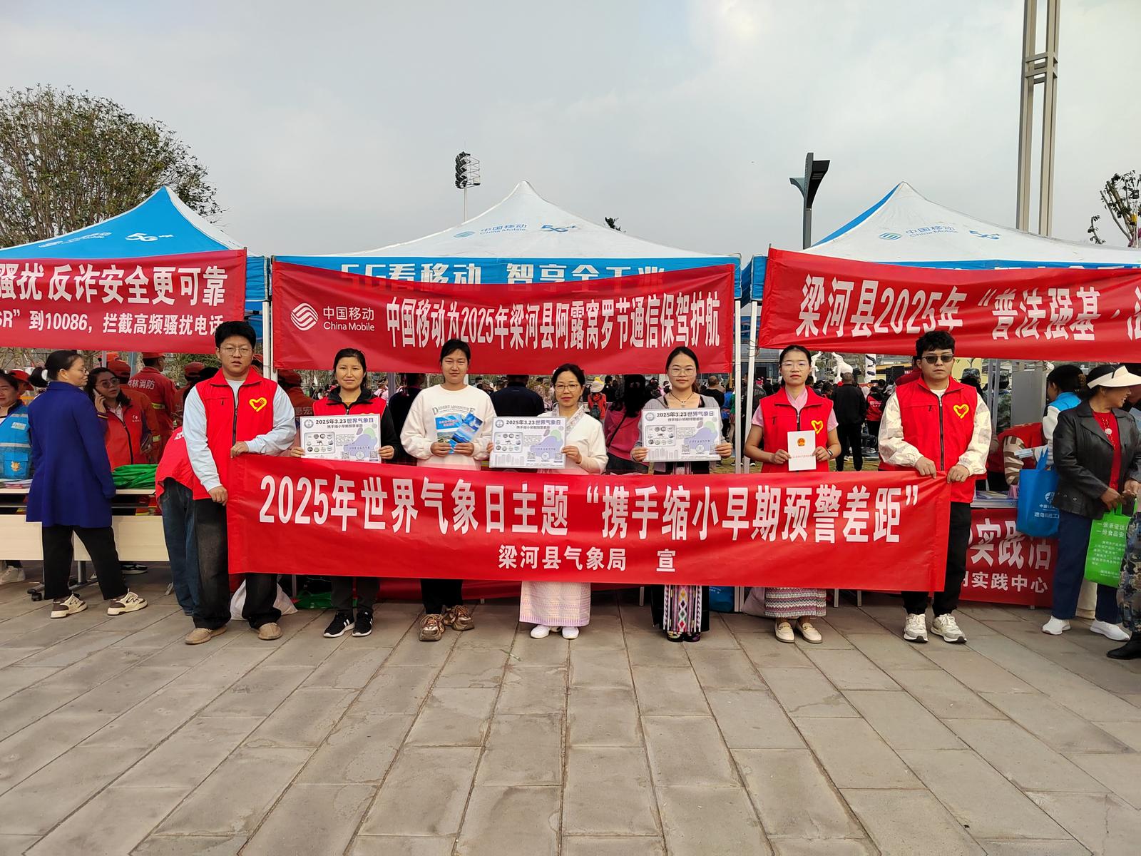 3月20日,八方宾朋和各族同胞盛装汇聚在梁河体育公园,载歌载舞“蹬窝罗”。趁着节日的浓厚氛围和群众们的激昂兴致,梁河县气象局携手县司法局、宣传部、消防等多部门联合开展科普及法规宣传活动。通过现场讲解、发放宣传册等方式,广泛宣传气象防灾减灾、气候变化、法律法规等知识。向群众讲解如何通过“梁河气象”微信公众号、抖音号、气象APP等方式获得及时、准确的预警信息。通过与群众的现场互动交流,呼吁大家行动员起来,共同提高社会公众气象防灾减灾和应对气候变化的应急能力,提高法治意识,做知法懂法守法公民。