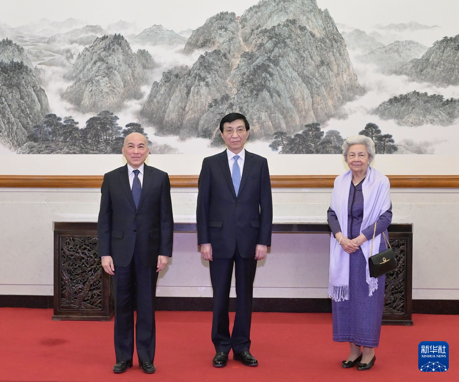 王沪宁会见柬埔寨国王西哈莫尼和太后莫尼列