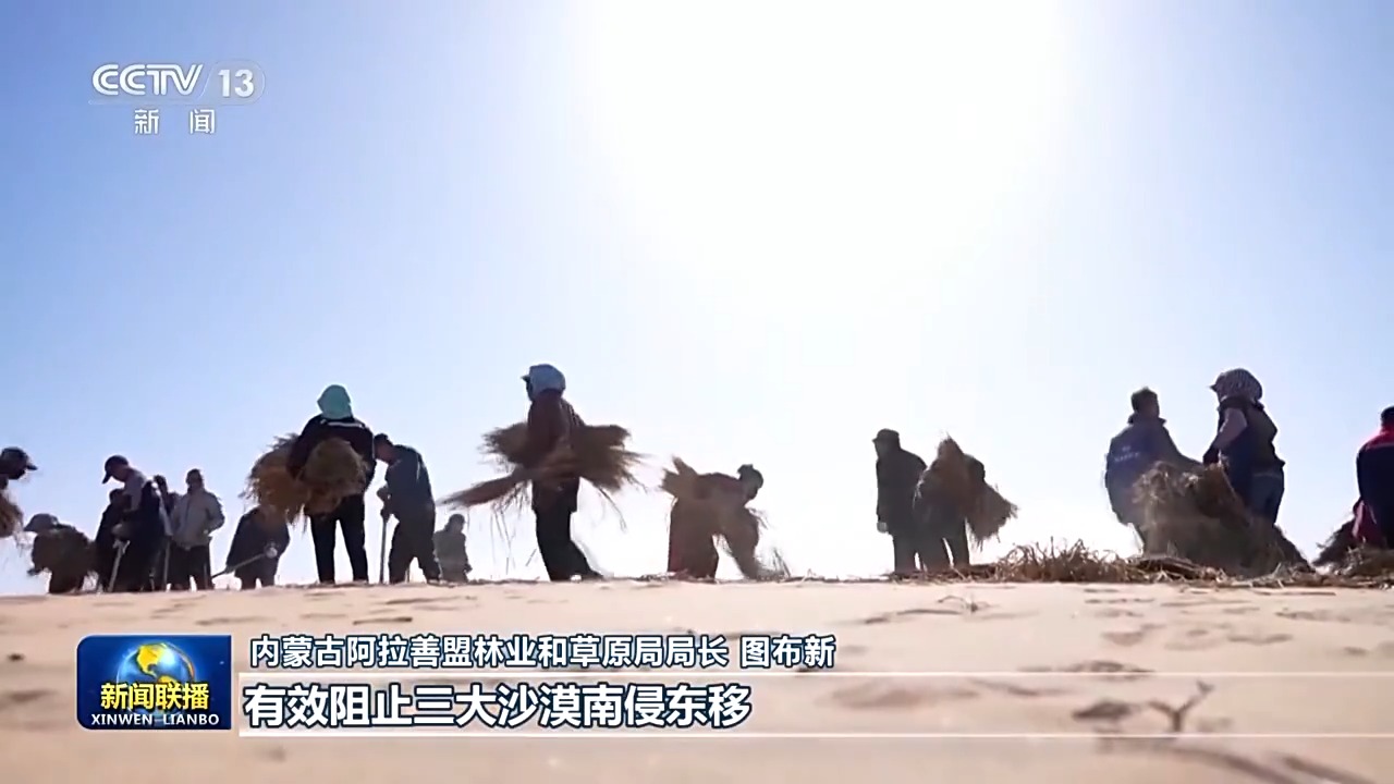 内蒙古阿拉善盟林业和草原局局长 图布新:工程合龙后,将对三大沙漠形成合围之势,有效阻止三大沙漠南侵东移,遏制三大沙漠间的“握手连片”之势,为打赢“三北”工程攻坚战奠定坚实的基础。