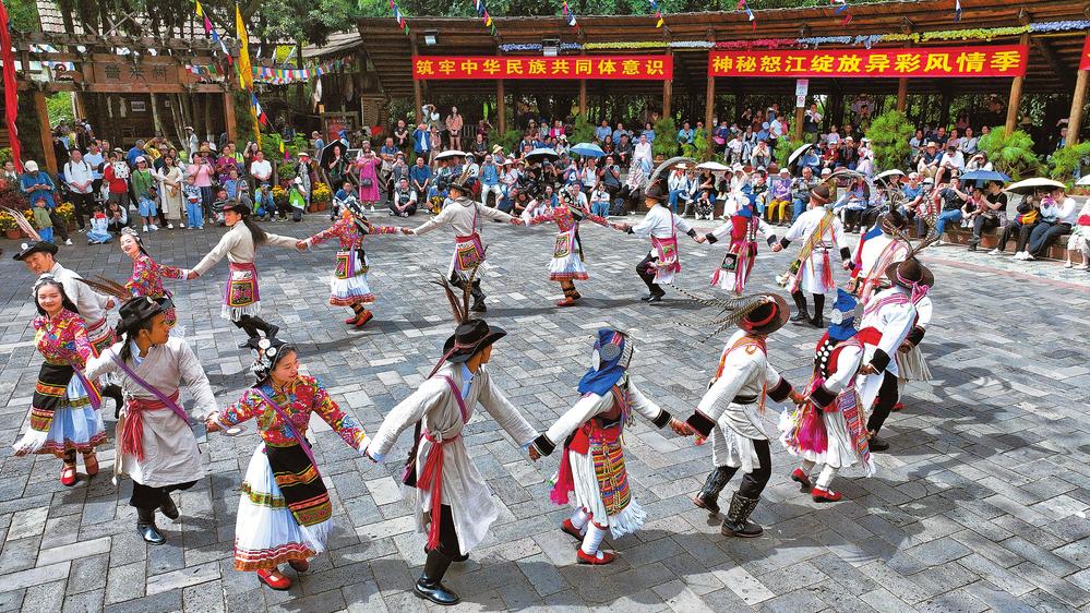 云南民族村通过沉浸式展演、非遗体验和节庆互动,架起各民族交往交流交融的桥梁。记者 陈飞 摄