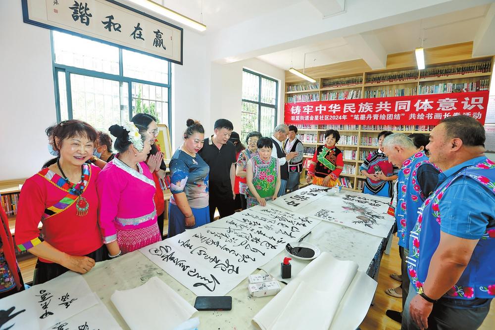 昆明市金星社区举办“笔墨丹青绘团结”主题书画展。记者陈飞 摄