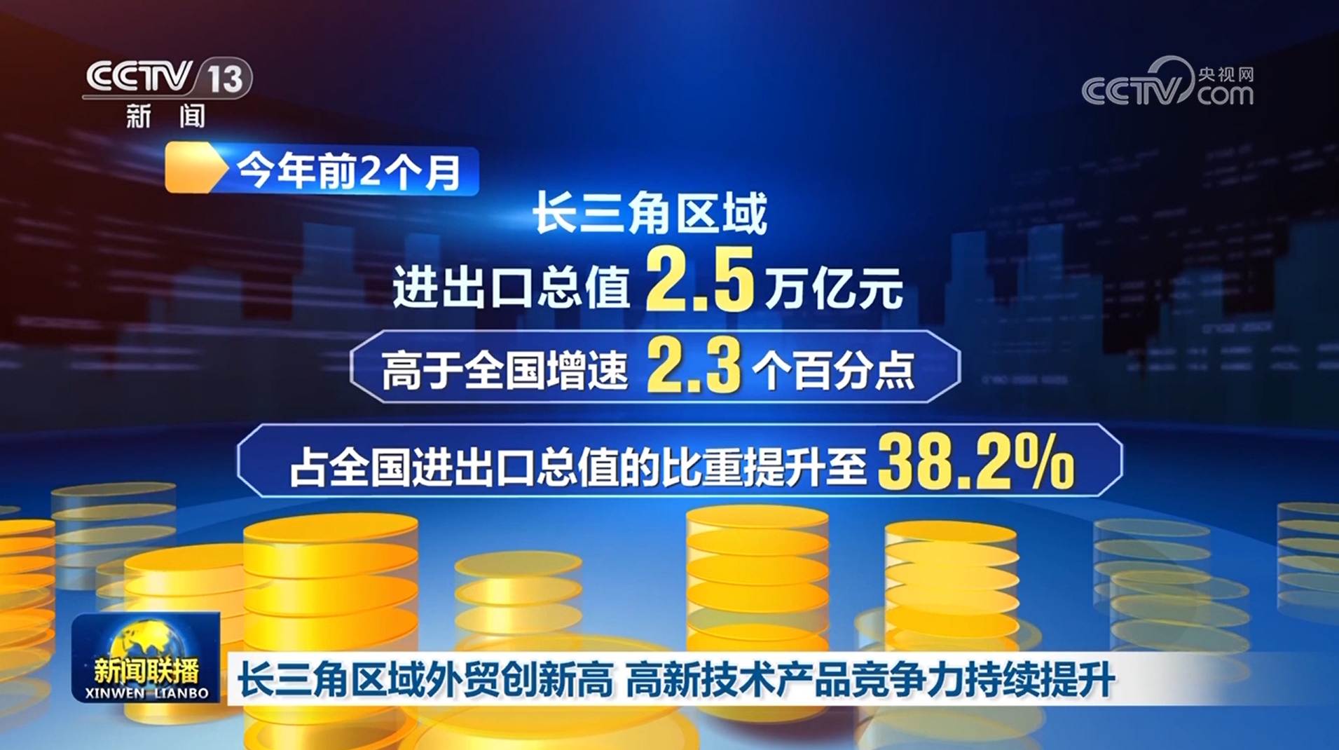 央视网消息(新闻联播):今年以来,长三角区域高新技术产品国际竞争力持续增强,贸易市场的多元化趋势日益显著,进出口规模再创历史新高。