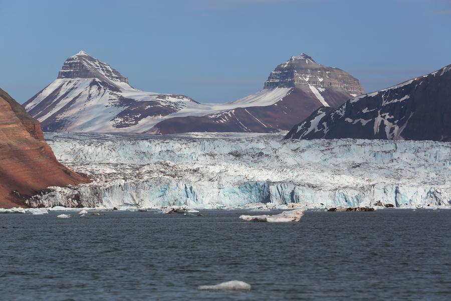 This photo taken on June 22, 2024 shows a view of melting glacier in Svalbard, Norway. (Xinhua/Zhao Dingzhe)