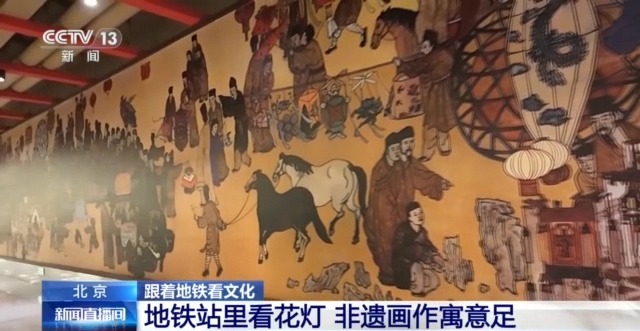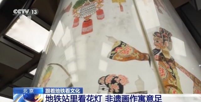 站厅里还围绕柱子打造了走马灯,这些形象都是非遗传承人手工制作贴在上面的。