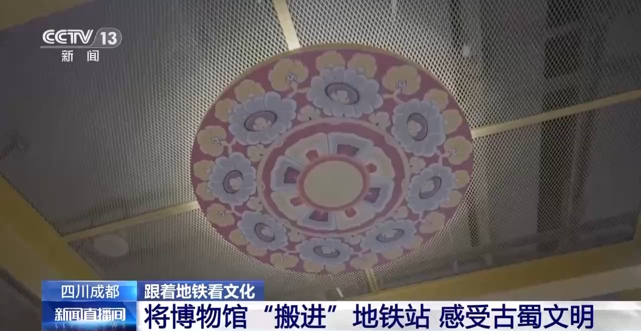 总台记者 蒋林:我们来到了成都地铁7号线的金沙博物馆站,它的设计理念融入了很多的古蜀文明和金沙文化符号。