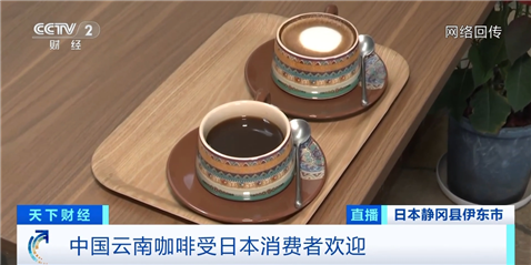 财经频道特约记者 牛璐:日本静冈县伊东市的一家咖啡店距离车站不到10分钟,交通非常便利,这家店大部分咖啡饮品用的都是云南咖啡豆,菜单上做了来自云南的标注。这里的一杯云南黑咖啡售价是600日元(约合人民币30元),比混合了其他咖啡豆的黑咖啡高出20%。店内坐了不少客人,他们表示云南咖啡的口感非常好,有的人还在结账时买了一些带回家。