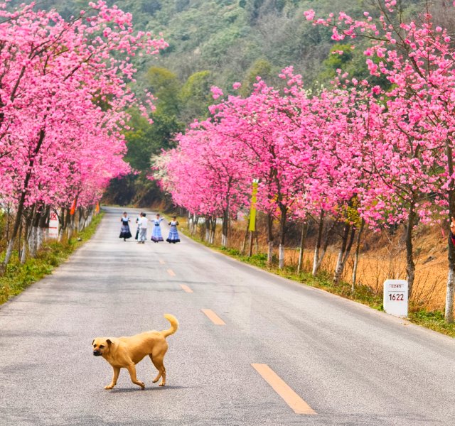 青龙峡安富公路一带,成为了昆明市民出游的热门选择。公路两侧的樱花正值盛放期,如云似霞的粉红花海在暖阳下显得格外迷人。3月23日,记者看到,身着各色服饰的游客在樱花树下拍照留念,欢声笑语回荡。