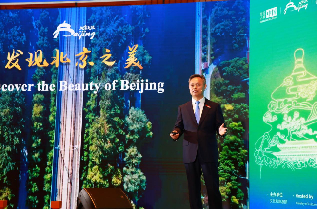 在“你好,北京”文旅推介中,北京市文化和旅游局局长郭怀刚全英文倾情推介北京入境游成果及丰富的文旅资源,展现北京文化魅力及开放包容的姿态。他表示,北京是世界旅游目的地城市,正在打造“中国入境旅游首选地”,坚持首善标准,国际化服务环境全面优化提升,注重供需对接,不断丰富北京文旅新产品、新业态、新场景、新体验,推出一系列丰富多元的北京入境旅游产品和线路,欢迎外籍游客和在京外籍友人邀请亲朋好友到北京走一走,看一看。