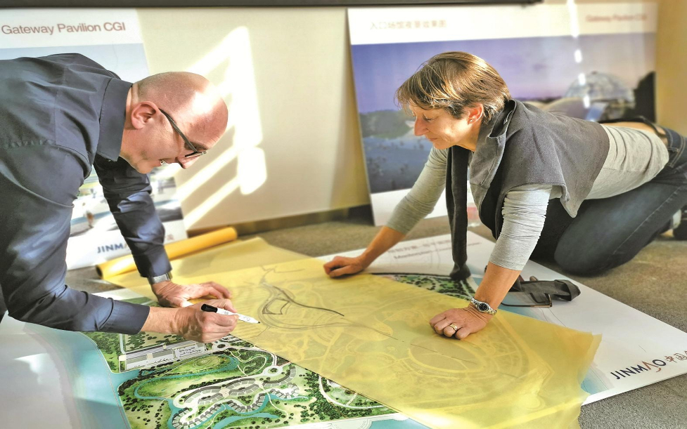 图为东方伊甸园建筑设计总负责人(左)正在参与设计规划 受访者 供图
