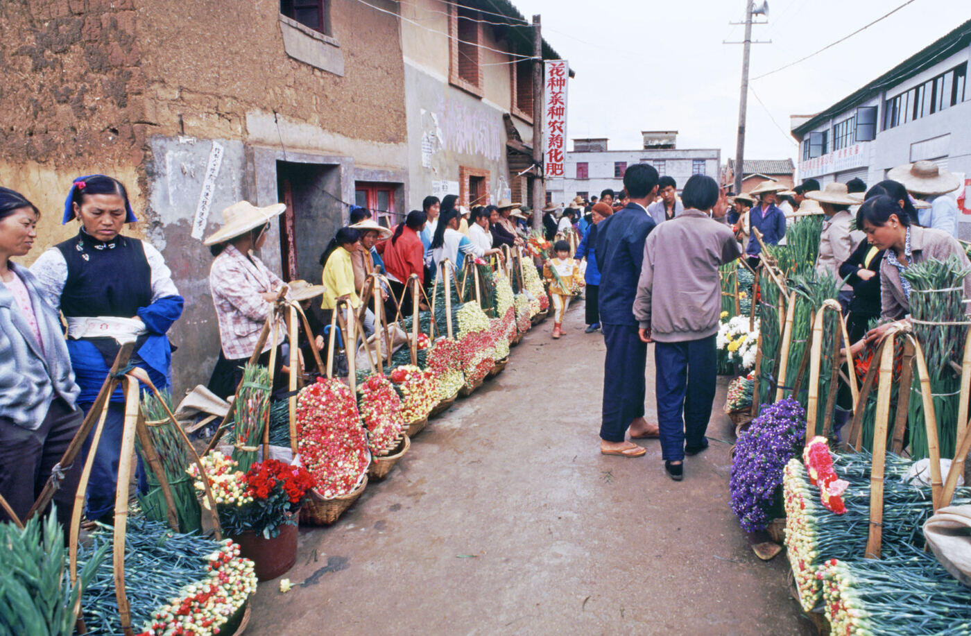 1990年,斗南村95%的农户把自家的菜地改为了花田;1992年,昆明尚义街花店里的鲜花几乎都来自斗南;1993年,斗南村里一批有志青年闯广州,把斗南的鲜花卖到了广州、上海;1995年,占地约12亩的中国第一个村级花卉市场诞生;1999年,占地56亩的全国第一个专业花卉交易市场建成,斗南逐渐形成了一个以花卉为核心的产业聚集区;2002年,中国第一个以拍卖为主的昆明花拍中心落成,斗南花卉交易进入公开透明竞价的时代……