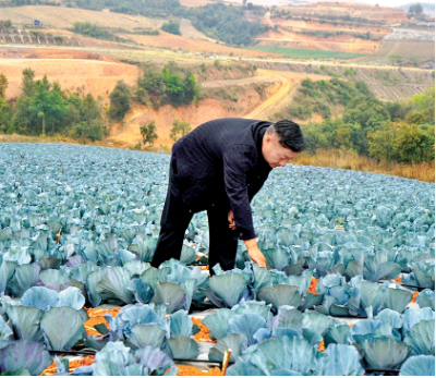 李云华查看紫甘蓝长势。