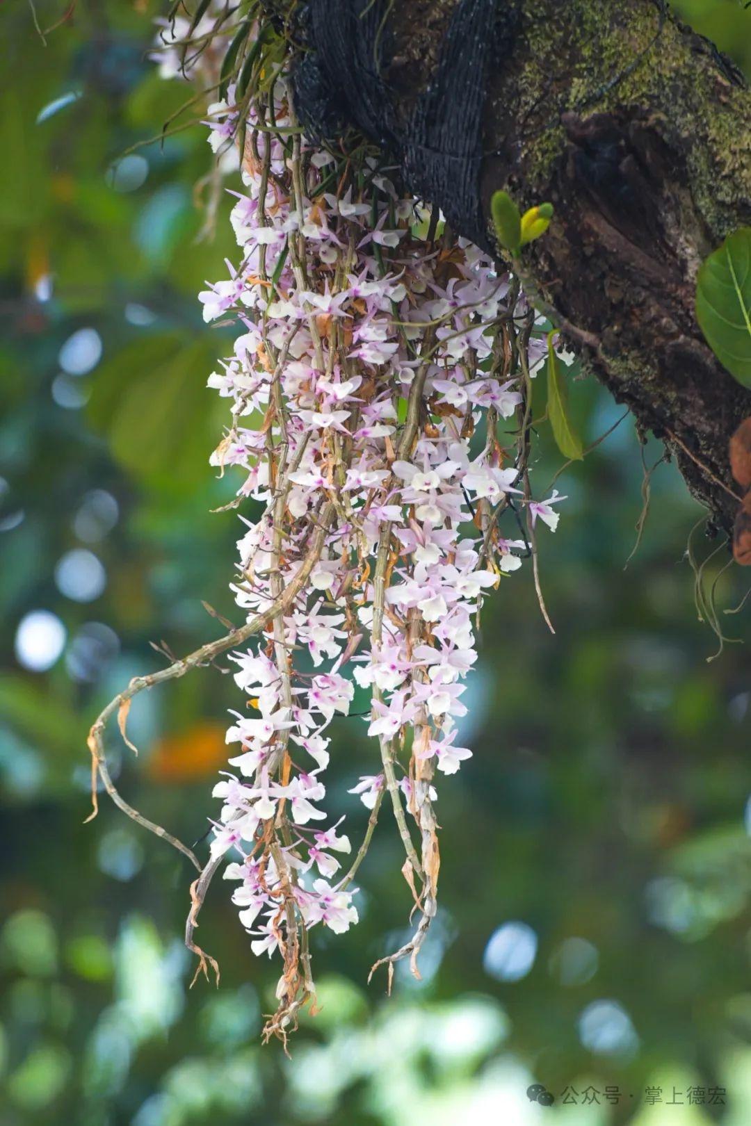 花瓣小巧玲珑,白中带粉,粉中有紫