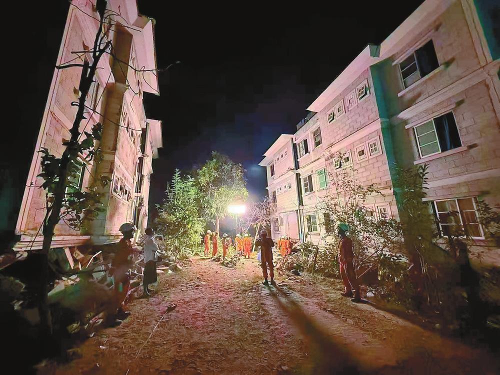 3月31日凌晨,中国云南救援医疗队联合缅、泰救援队开展救援。