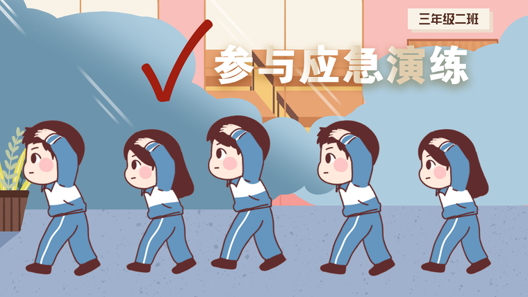 立即采取“伏地、遮挡、手抓牢”姿势,躲避在坚固的桌子、床沿或承重墙角落,保护头部和颈部。