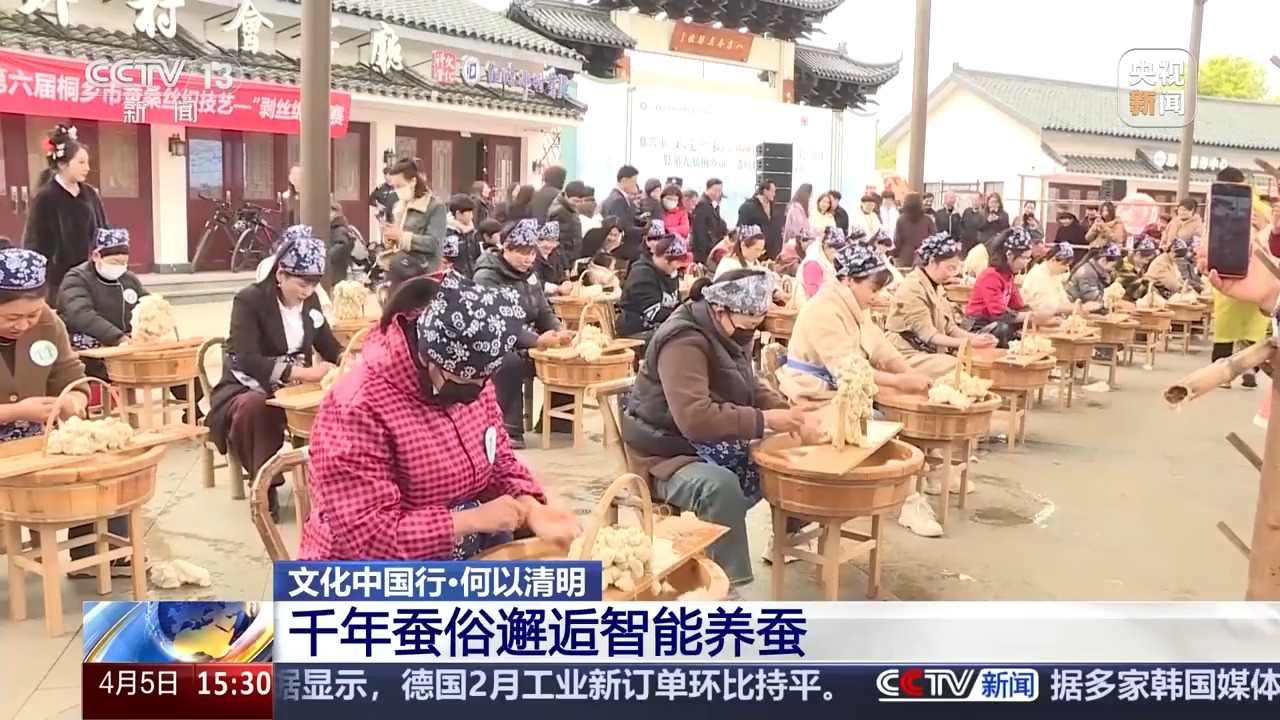 蚕桑丝织技艺展演、蚕丝被制作展示、剥丝绵大赛等独具蚕乡风情的民俗活动,将旧时清明“轧(gá)蚕花”的盛景,拉回到了眼前。