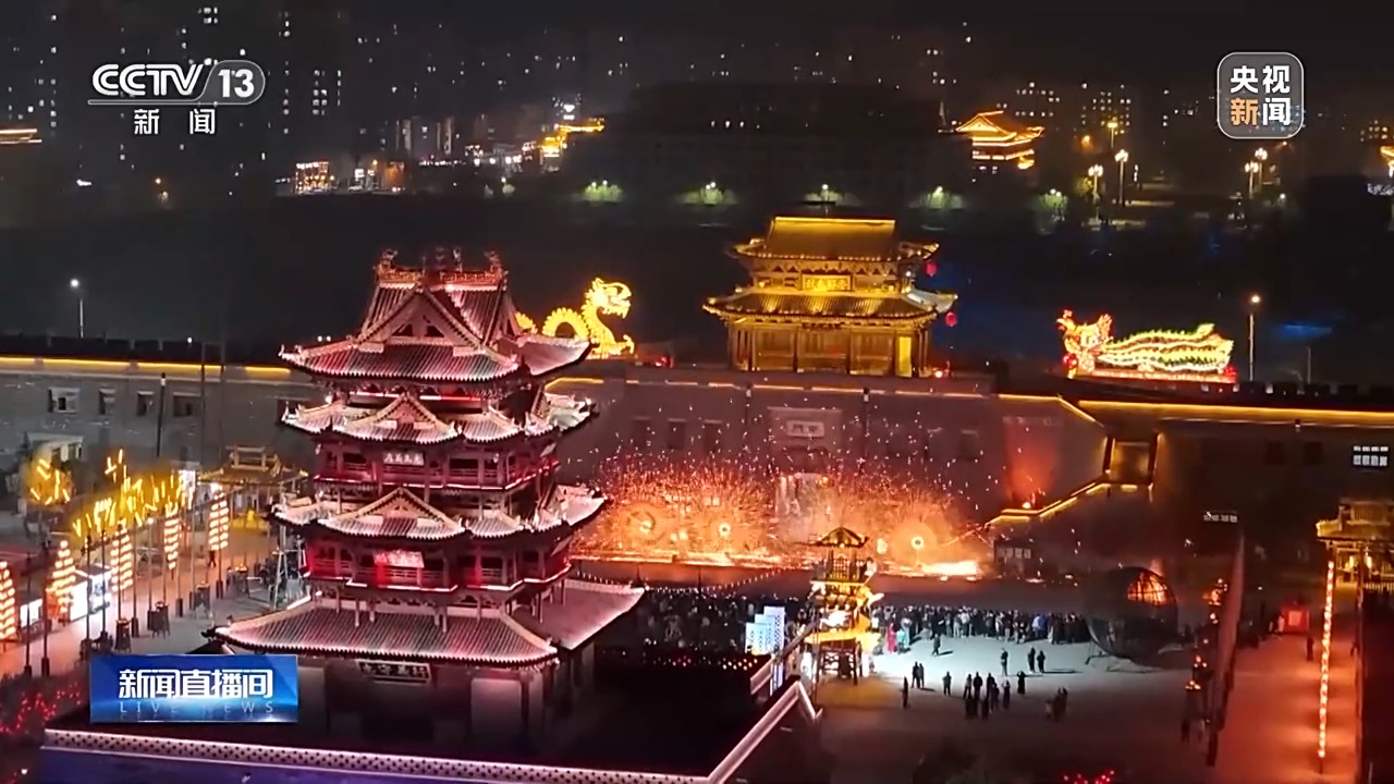 除了汉服打卡活动,宋代点茶技艺展示、传统武术表演、杂技绝活等丰富的民俗节目也轮番上演。夜幕降临后,非遗打铁花表演点亮古城夜空,铁花与古建筑交相辉映,配合舞台演出,为游客带来视听盛宴。
