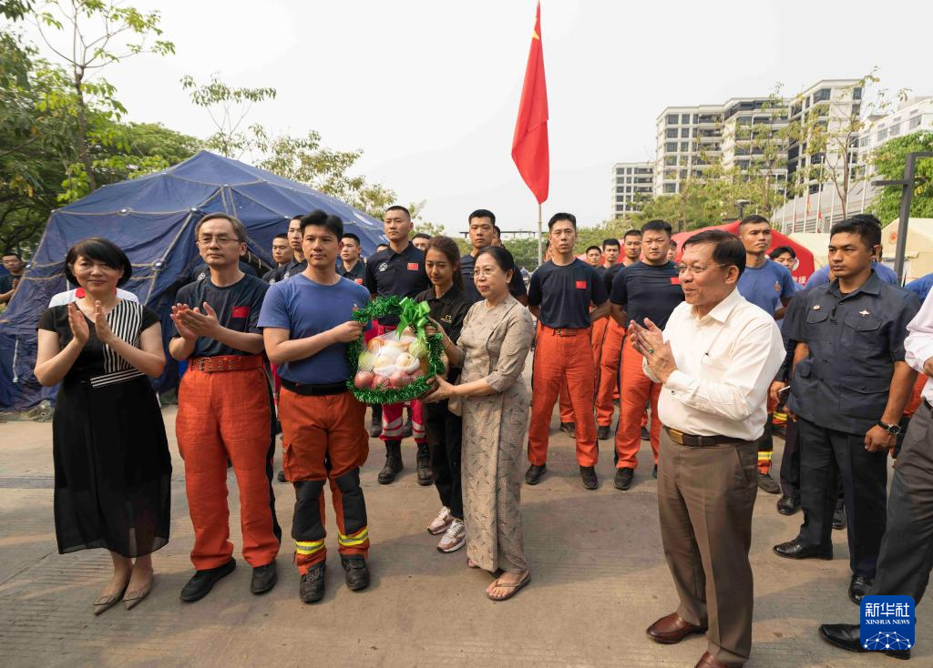 中国驻曼德勒总领事高萍、曼德勒省首席部长苗昂参加慰问。截至4月6日,中国救援队伍在缅甸共搜救出9名幸存者。