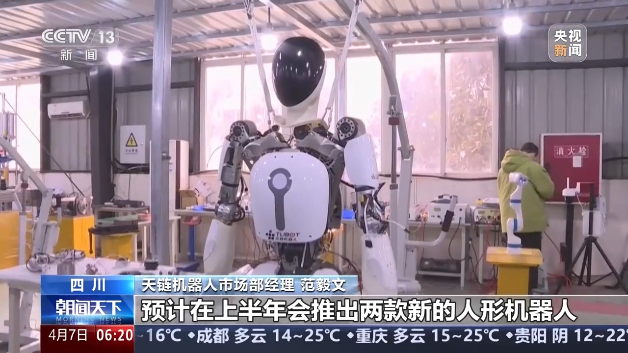 天链机器人市场部经理 范毅文:过去的一年,我们销售业绩突破3000万,今年我们将继续加大研发力度,预计在上半年会推出两款新的人形机器人,预计全年实现5000万元的销售目标。
