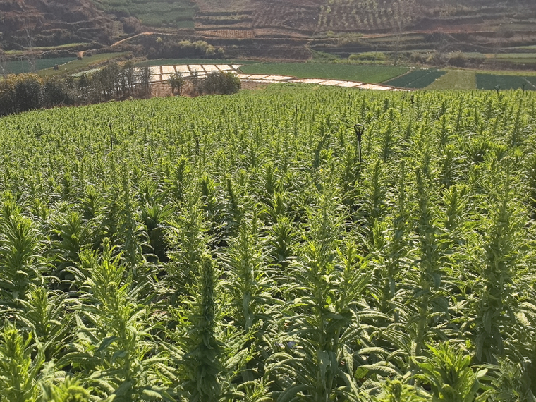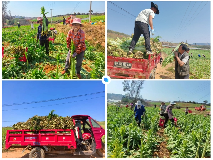 种植户段先生带着50余名工人,忙碌地穿梭在田间地头,分工有序地去叶、收割、装车、加工、晾晒……呈现出一派丰收的景象。