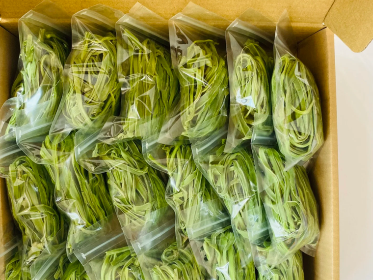 目前,凤莱社区已初步形成“种植+采摘+加工+订单销售”的产业发展模式,贡菜经过收割、削皮、开条、晾晒等初步加工后畅销省内外,每年栽种收割两季,新鲜贡菜每公斤1元,晾晒干贡菜每公斤70元,预计创收100余万元,成为北古城镇特色产业的一张靓丽名片。