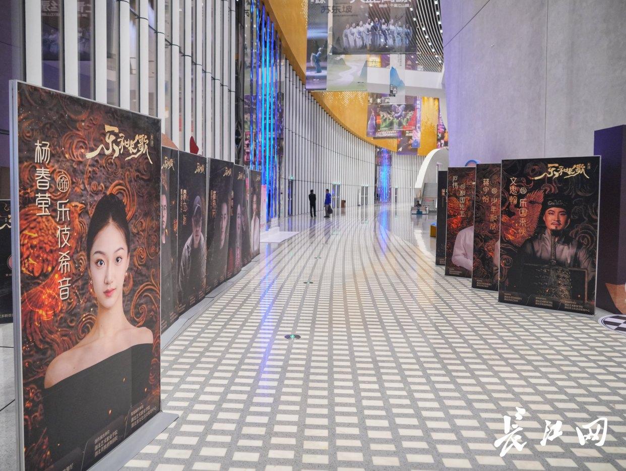 苏州湾大剧院入场大厅内摆满《乐和长歌》海报。记者王海 摄