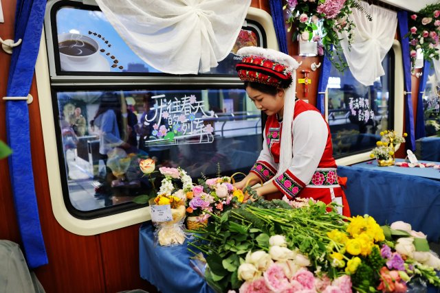 4月7日20时,一列被绚烂花卉装点一新的“赏花之旅•一路花香”主题列车缓缓驶离昆明站,踏上前往北京的旅程,标志着昆明至北京花卉主题列车正式开行,这是全国开行的首趟花卉主题列车,也是铁路与文旅深度融合的典范,这趟列车将云南丰富的花卉资源与列车服务文化融合,通过列车这一“流动花海”,为旅客打造“一路花香”全新体验,畅享“有一种叫云南的生活”。