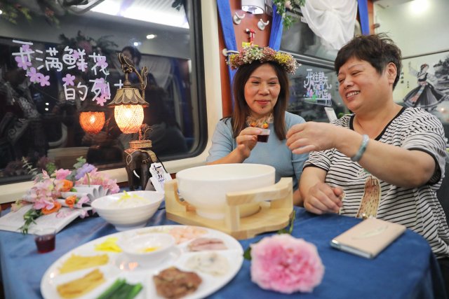 除了视觉上的享受,“赏花之旅•一路花香”列车还为旅客提供丰富的文化体验服务。在列车上,旅客可以品尝到由云南鲜花制成的美食,如鲜花酥、鲜花饼等,感受花香与菜香的完美结合。同时,列车设置了花艺台,旅客还可以在此体验插花的乐趣,亲手创作属于自己的插花作品。列车还推出了“云花伴旅”文化体验服务,旅客可以在乘务员的帮助下编制花卉头绳,或在“昆铁+”小程序上下单购买云南的花卉产品,将这份来自云南的美好带回家。