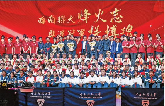 在云南师范大学实验中学,奥运冠军们与学校乒乓球队队员们进行了一场乒乓球友谊赛,为师生们上了一节“冠军体育课”。马龙还以《奋斗的青春,与祖国同行》为题,分享了自己的拼搏故事,鼓励青年学子们铭记西南联大的烽火岁月,将爱国情怀融入青春的奋斗中;用乒乓球这一“小球”转动“大梦想”,在各自的领域勇攀高峰。