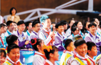 云南师范大学附属小学的学生在活动现场向马龙提问。