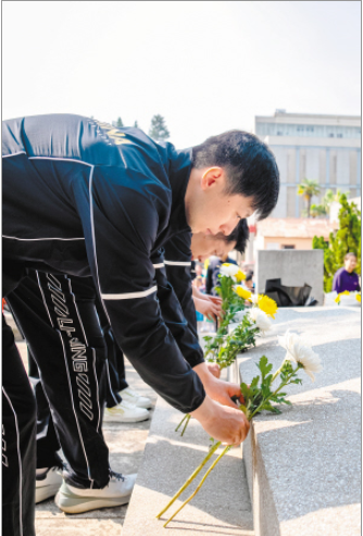 马龙在云南师范大学西南联大旧址为“一二·一”运动四烈士墓敬献鲜花。