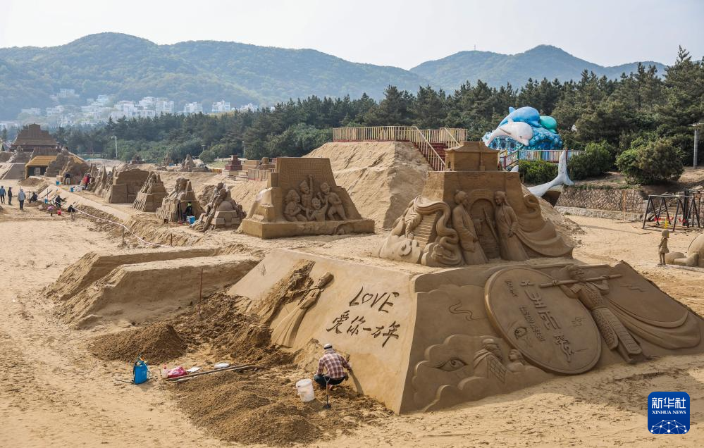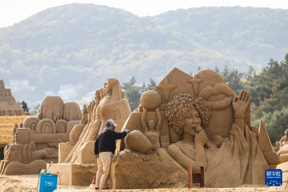 目前,位于浙江省舟山市朱家尖南沙景区的2025第二十六届舟山国际沙雕节沙雕作品创作有序推进。本届沙雕节以“音乐南沙”为主题,以世界经典音乐和流行文化音乐为创作主题,将于五月前完工。(新华社 记者徐昱 摄)