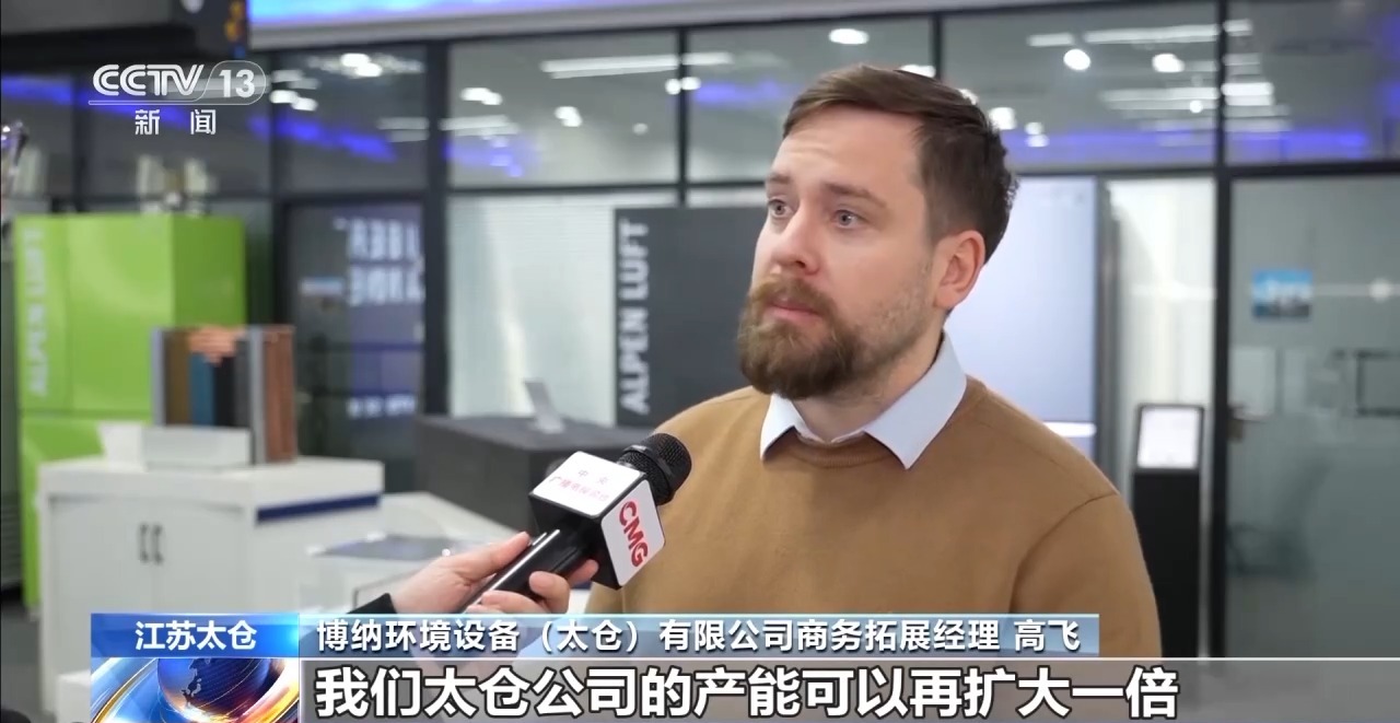 博纳环境设备(太仓)有限公司商务拓展经理 高飞:二期投产后,我们太仓公司的产能可以再扩大一倍,可以更好地服务中国客户需求,也坚定了继续加大在中国投资的决心,集团董事会决定,每年将中国市场的30%利润用于再投资,来保持良好的增长态势。