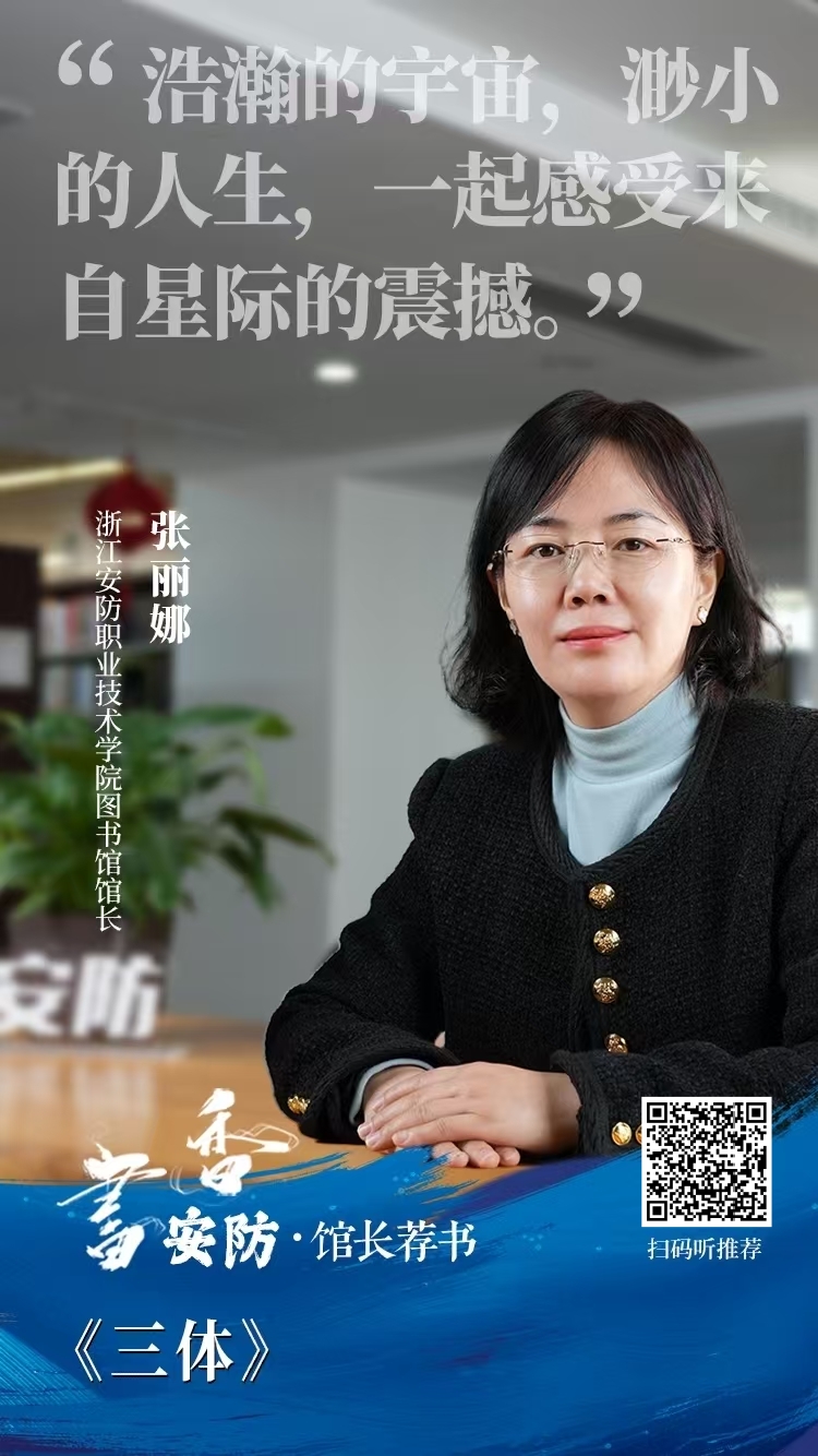 为充分发挥温州高校阅读联盟平台的纽带作用,营造高校师生人人参与、共建共享的良好阅读生态氛围,丰富高校师生精神文化生活,助力“书香社会、阅读温州”建设,即日起,温州高校阅读联盟正式启动“书香青春·领读未来”主题活动。活动期间,各在温高校书记、校长、图书馆馆长等将通过镜头推荐书籍,分享阅读感悟,启迪师生心智。“书香青春·领读未来”主题活动之“馆长荐书”第二期,浙江安防职业技术学院图书馆馆长张丽娜带来《三体》,邀你一起畅游科幻的星辰大海。