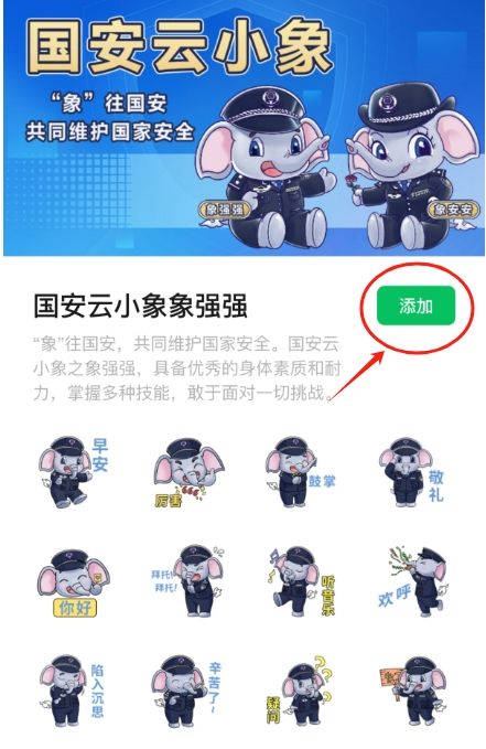 第二步:点击添加表情包,就能让“象强强”和“象安安”在你的聊天框里“活跃”起来啦,快行动起来吧!