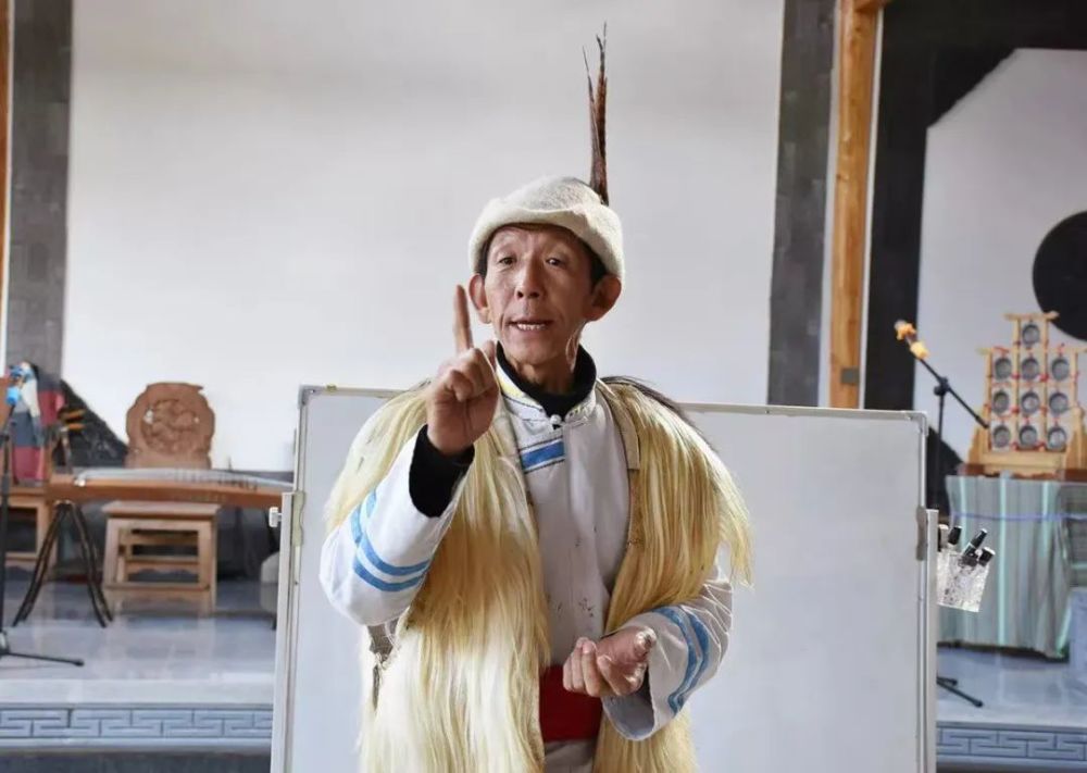 国家级非物质文化遗产项目“白沙细乐”代表性传承人和凛毅。(丽江融媒记者 张小秋 摄)