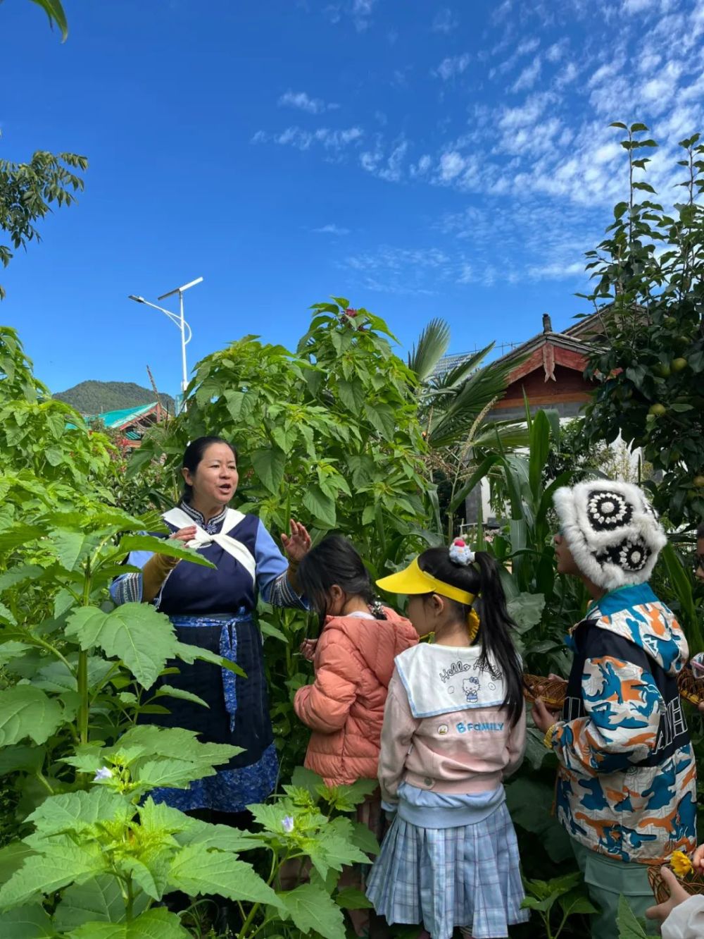 和慧琪带小朋友到自家菜园采摘蔬果。(供图)