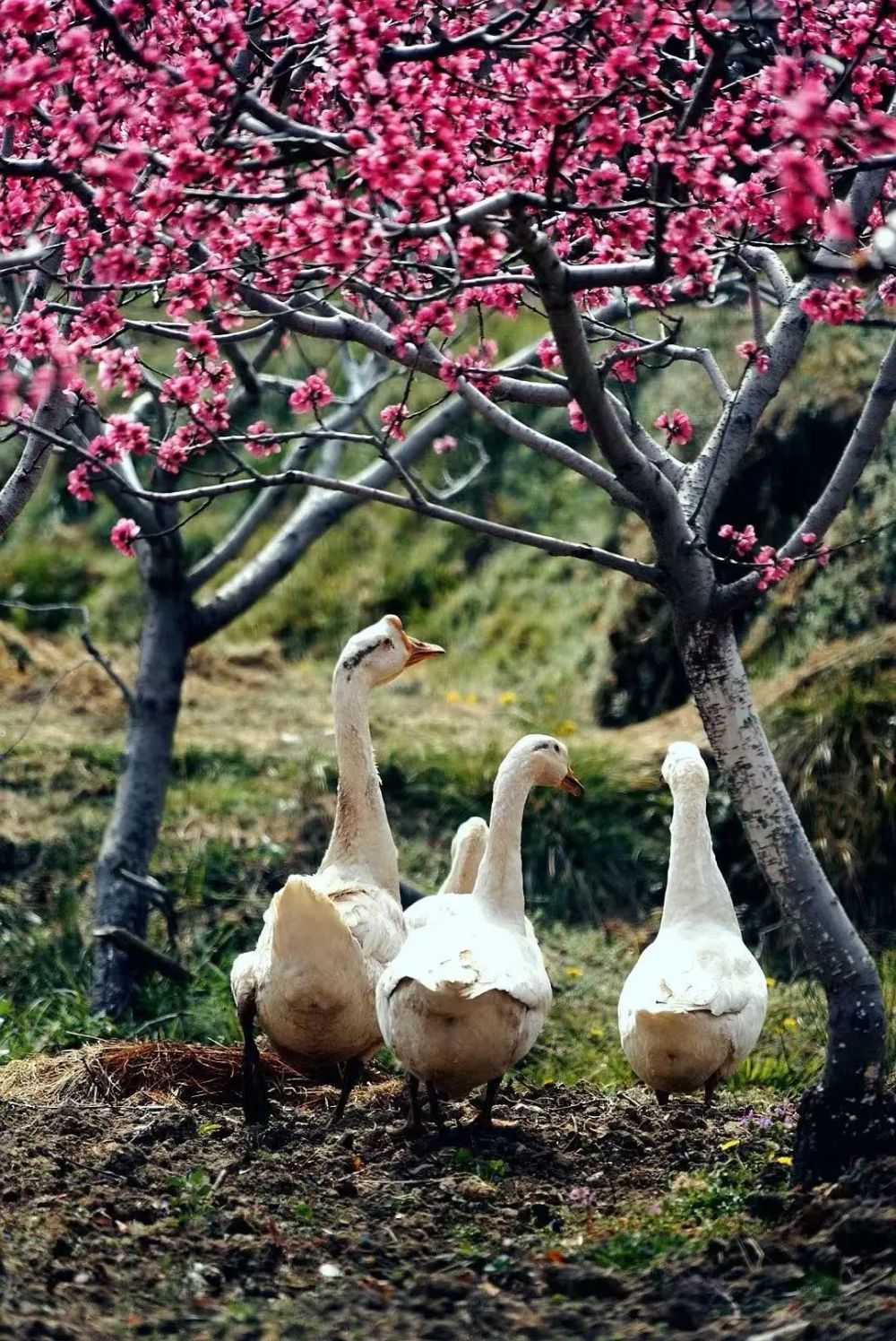 石鼓镇吉北科桃树下怡然自得的大鹅。(丽江融媒记者 李琳瑛 摄)