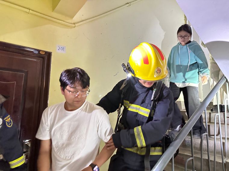 在实操环节,宣传员现场演示了灭火器的正确使用方法,即“提、拔、握、压”四个关键步骤,并详细介绍了室内消火栓的使用要点和注意事项。同时,针对住宅火灾逃生的难点问题,盘龙区消防救援大队组织居民进行了模拟火场逃生演练。在演练过程中,居民们按照宣传员所教授的“弯腰低姿、捂鼻快行”的逃生技巧,有序地从模拟火场环境中撤离,亲身体验了火灾逃生的紧张与规范流程。