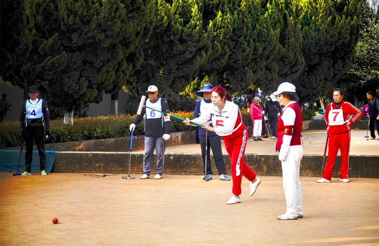 2025年昆明市老年人门球比赛自4月9日开展以来,吸引了来自五华区、官渡区、西山区、呈贡区、嵩明县等20支队伍参赛。竞赛分两个阶段进行,第一阶段分组单循环赛,分组以上一次门球比赛名次为依据,设种子队蛇形排列编排;第二阶段采用淘汰附加赛,决出全部名次。
