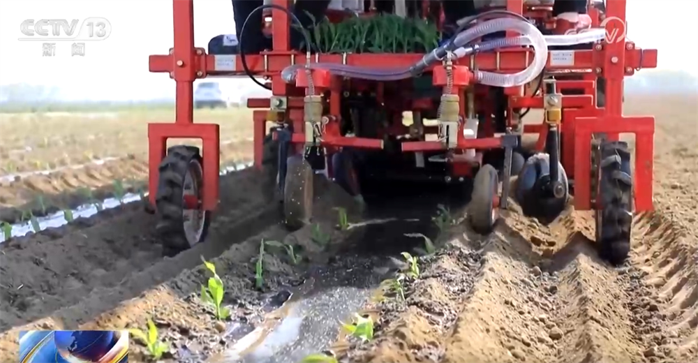 山东春玉米播种也陆续展开,今年当地推广应用单粒精密播种机等新机型15万台套。在桓台,随着机械臂精准落位,玉米秧苗整齐栽入土壤,施肥、覆地膜、铺滴灌带等多个工序一次完成。