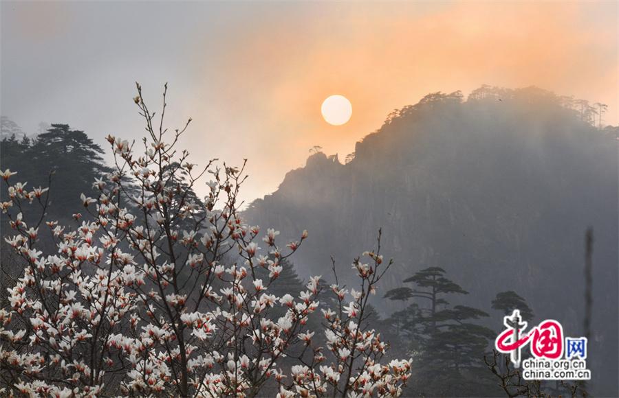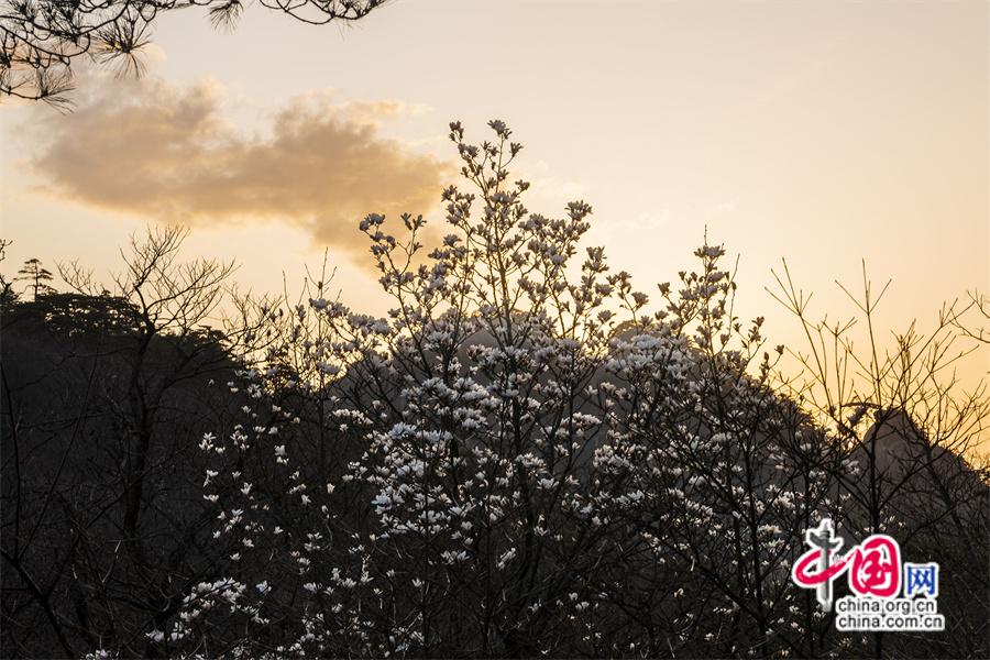 近日,安徽黄山海拔1600多米以上的之巅,被誉为“报春花”的黄山木兰,在黄山之巅盛开了,迎来最佳观赏期,千花万蕊在暖阳之中尽相绽放,满树满枝的花朵晶莹清丽,散发着淡淡幽香。