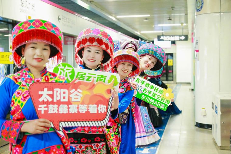 在舞蹈演员的引导下,乘客随人流来到3号线候车通道,这里化身为“热情东川”的舞台,一曲《东川小情歌》让人感受到东川的浪漫,《这点是东川》说唱歌曲带领观众感受东川的热情魅力。