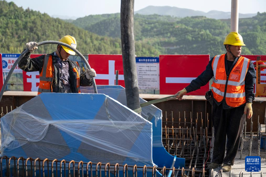 4月14日,中铁十一局工人在汉江特大桥合龙施工现场作业。新华社记者 伍志尊 摄