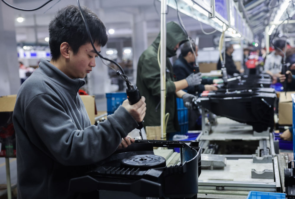 3月11日,在位于慈溪市横河镇的宁波好使特电器有限公司的车间内,工人在流水线上组装一批出口的园林工具。新华社记者 徐昱 摄