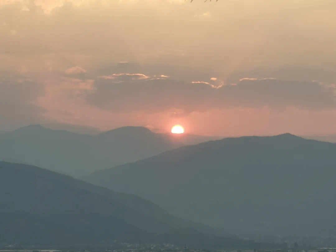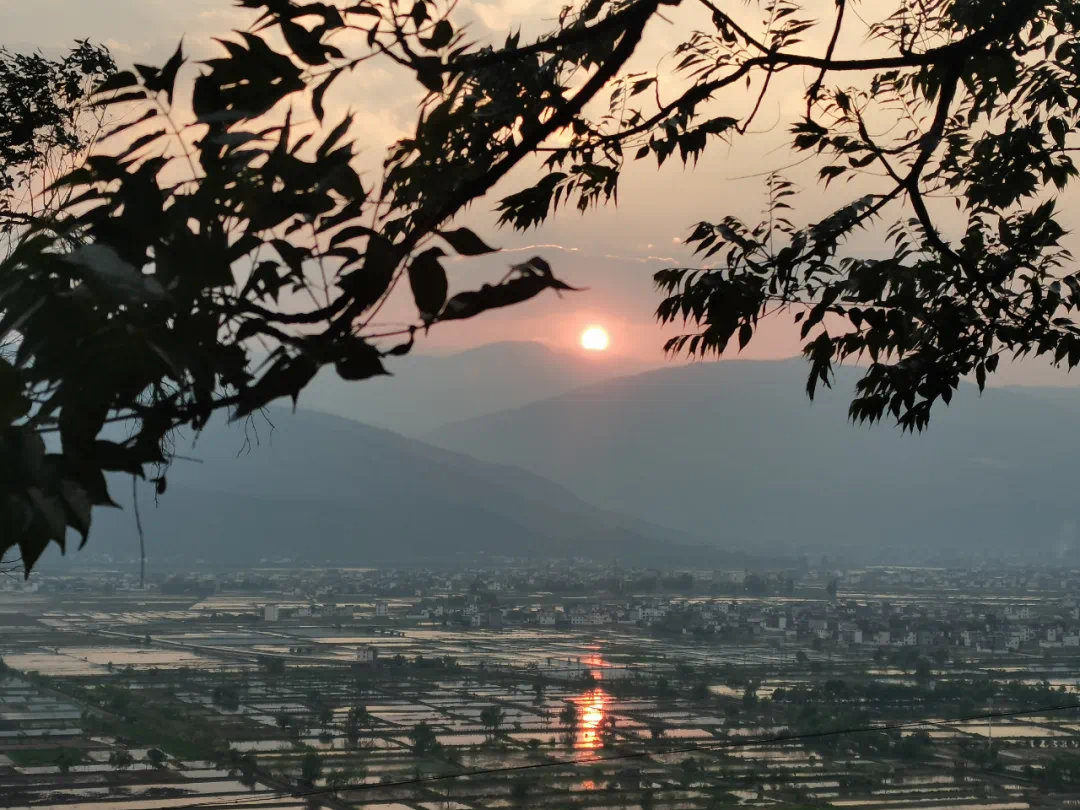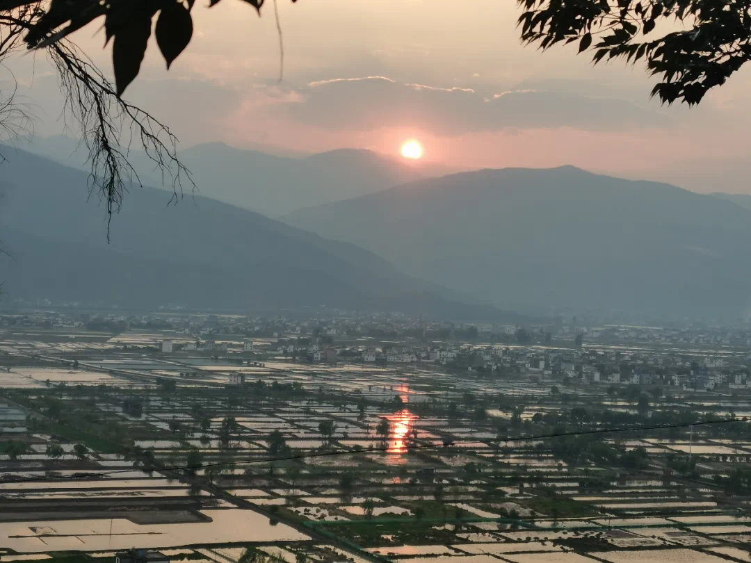 夕阳挂在云端,伴着晚霞,日薄云淡,把远山的轮廊勾勒得一片沧茫,红与黑之间,令人倍感寂寥,大地一抹血红。春暮日薄,平静的水面,日头倒映,天上地下两轮夕阳,映射在烟波浩渺的水面,阡陌交通,鳞次栉比的房屋,映衬在苍茫的水中。
