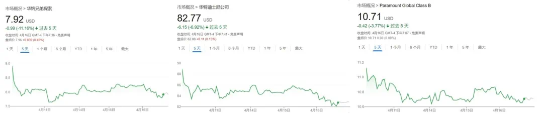 美东时间16日,原本就一直处于低位的华纳兄弟探索、华特迪士尼、派拉蒙全球等知名美国电影公司股价于低位水平内再度暴跌。