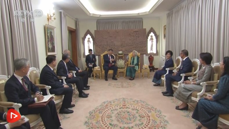 4月17日晚,国家主席习近平同柬埔寨太后莫尼列在金边王宫举行会见。