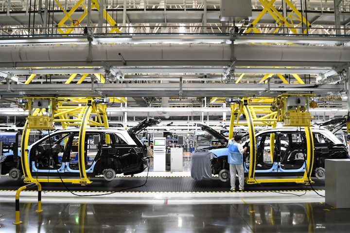 这是在位于重庆市两江新区的赛力斯汽车超级工厂拍摄的智能化生产作业现场(2024年6月7日摄)。新华社记者 王全超 摄