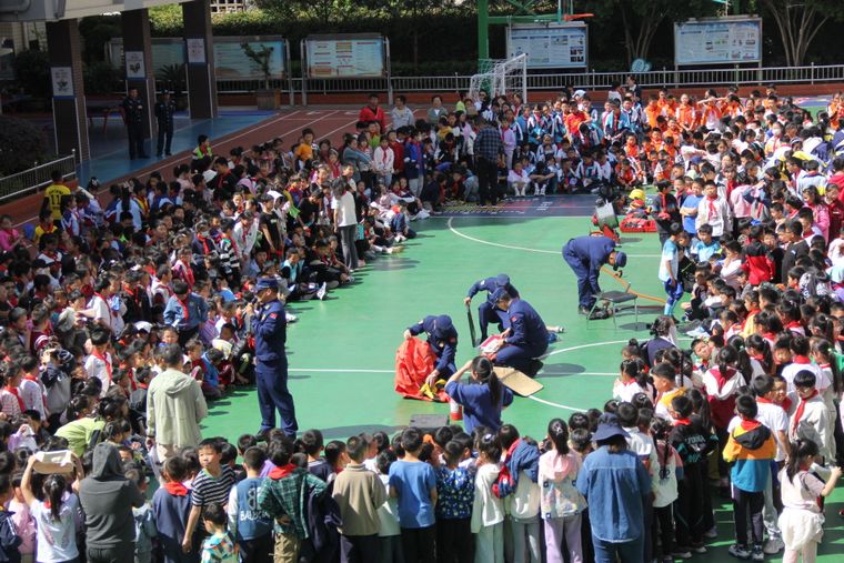 同步,盘龙区消防救援大队还联合盘龙小学组织开展“消防进校园”主题活动,通过“知识宣讲+逃生演练”的形式,为师生送上一场生动实用的消防安全院坝课。