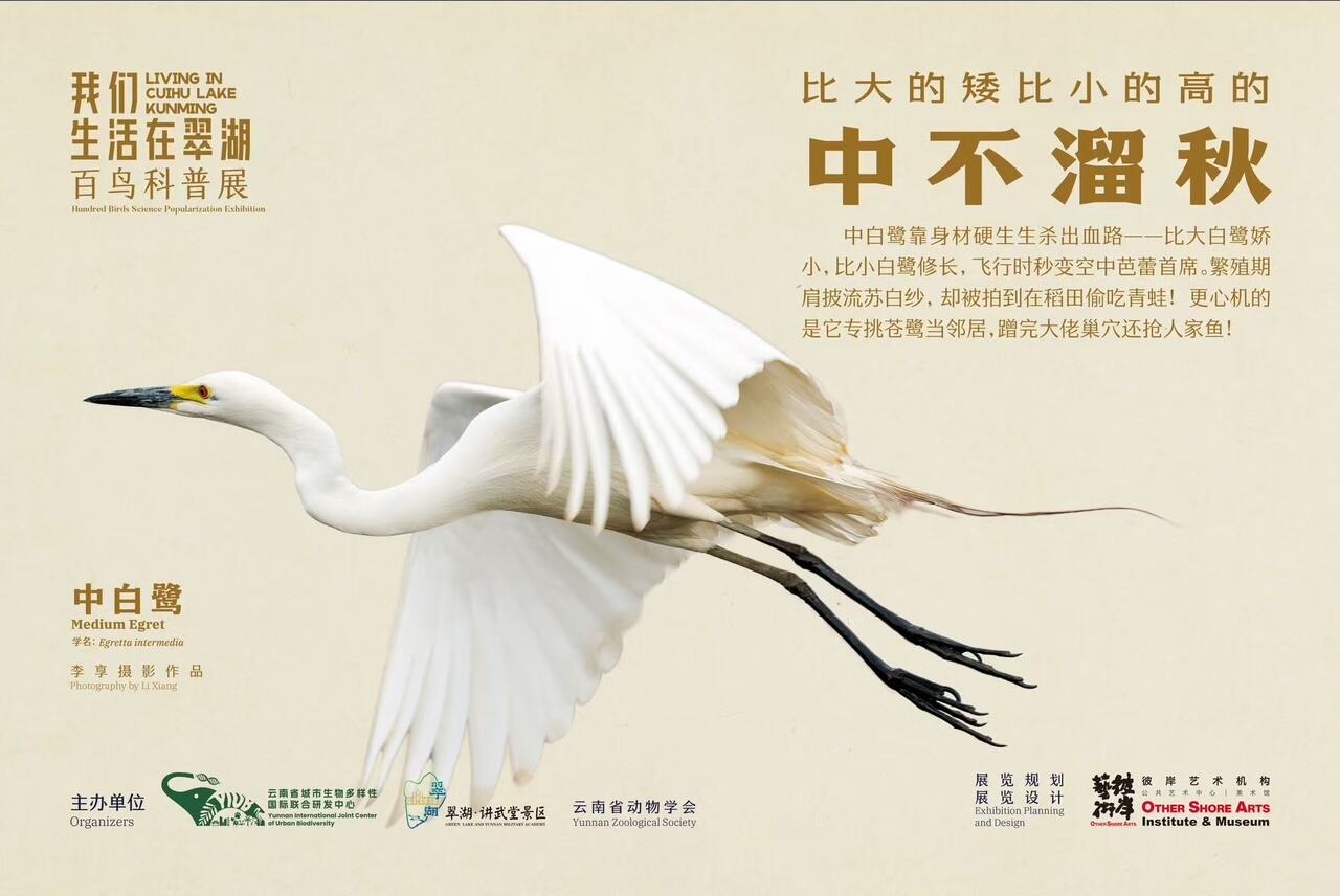 “100种鸟类物种同时出现在城市主城区的公园是很少见的”截至2025年4月数据,云南省城市生物多样性国际联合研发中心与云南省动物学会的记录显示,在昆明市中心的翠湖公园栖息过的鸟类物种已突破100种大关。借此,云南省城市生物多样性国际联合研发中心联合昆明翠湖公园、云南省动物学会和彼岸艺术机构,于4月22日举办“我们生活在翠湖”百鸟科普展。